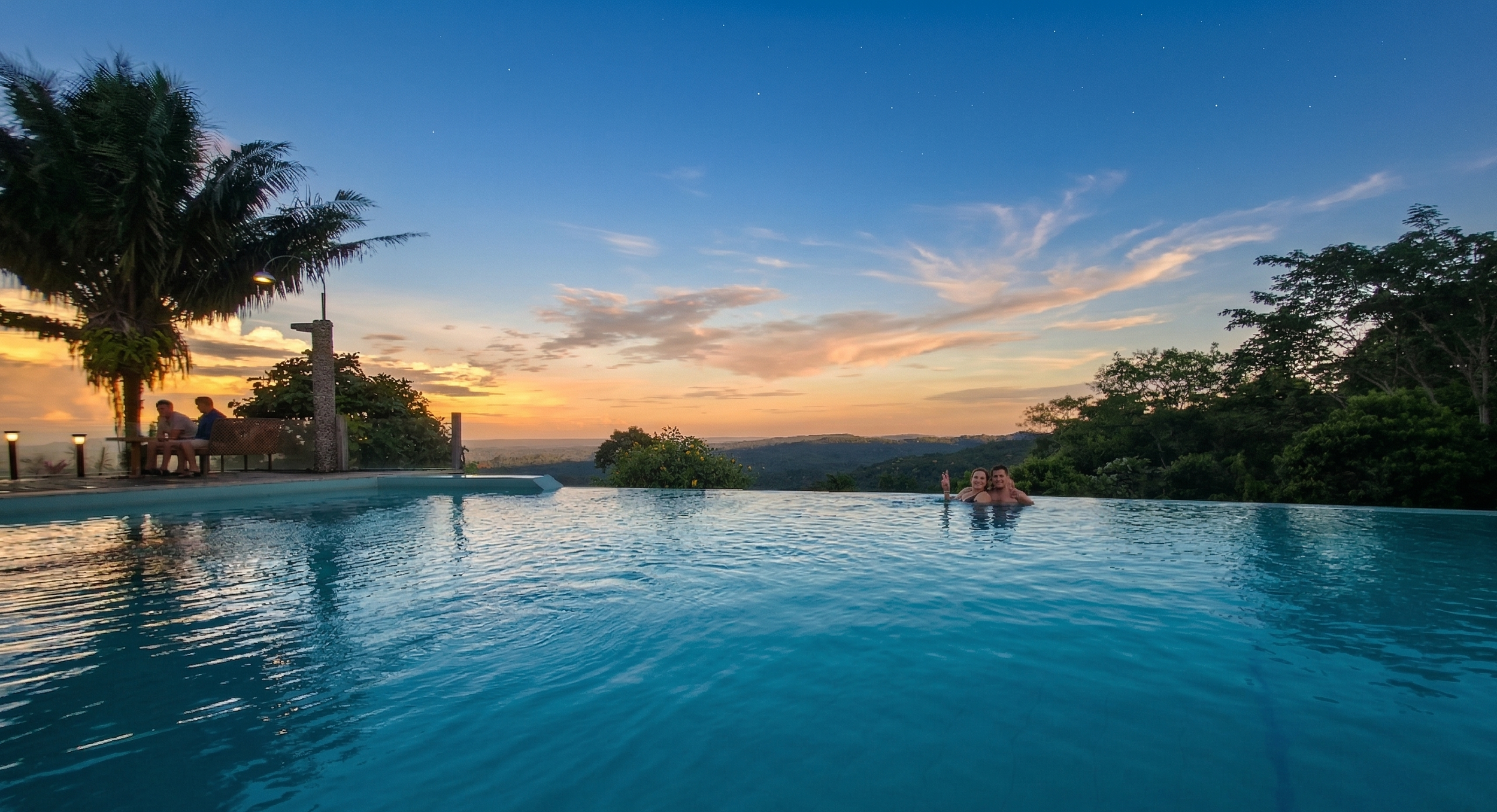 Piscina Infinita: Sumérgete en aguas cristalinas con una vista que se funde con el horizonte infinito de la selva.